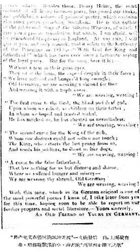 这首歌的德文原文是我所知道的最有力的诗歌之一;这次我也就此和你告别;希望不久我就能告诉你有关我们的进展和社会著作的消息。