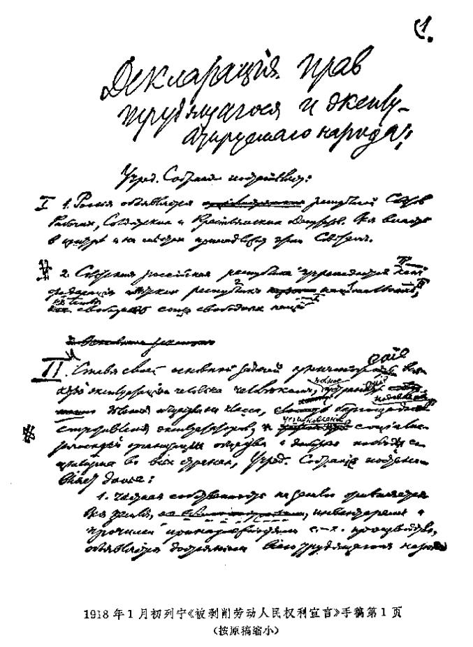 注释: [107] 《被剥削劳动人民权利宣言》的草案是在全俄中央执行委员会1918年1月3日(16日)会议上提出的。草案以多数票(有两票反对,一票弃权)通过后,交协商委员会最后审定。《宣言》发表于1月4日(17日)《真理报》第2号和《中央执行委员会消息报》第2号。1月5日(18日),雅·米·斯维尔德洛夫在立宪会议第一次会议上代表全俄中央执行委员会宣读了《宣言》,并建议批准。立宪会议的反革命多数拒绝予以讨论。《宣言》于1月18日(31日)被全俄苏维埃第三次代表大会批准,后来被写入1918年俄罗斯联行宪法,作为它的第1篇。全俄苏维埃第三次代表大会通过宣言时,删去了原稿中涉及立宪会议的地方。 斯大林和尼·伊·布哈林参加了草案的起草:列宁手稿的第2部分中,有斯大林的修改;第4部分第2段是由布哈林起草、列宁审定的。——224。 [108] 1917年12月6日(19日),芬兰议会通过了宣布芬兰为独立国家的宣言。12月18日(31日),人民委员会通过了芬兰独立的法令。列宁亲自把法令文本交给了芬兰政府代表团团长、芬兰政府首脑佩·埃·斯温胡武德。全俄中央执行委员会在1917年12月22日(1918年1月4日)批准了关于芬兰独立的法令。 1917年12月19日(1918年1月1日),苏维埃政府根据12月2日(15日)俄国同德国、奥匈帝国、土耳其和保加利亚在布列斯特-里托夫斯克签订的停战协定,向波斯政府提出了关于制定撤退波斯境内俄军的总计划的建议。 1917年12月29日(1918年1月11日),人民委员会通过了《关于“土耳其属亚美尼亚”的法令》,并公布于1917年12月31日(1918年1月13日)《真理报》第227号。——228。 |